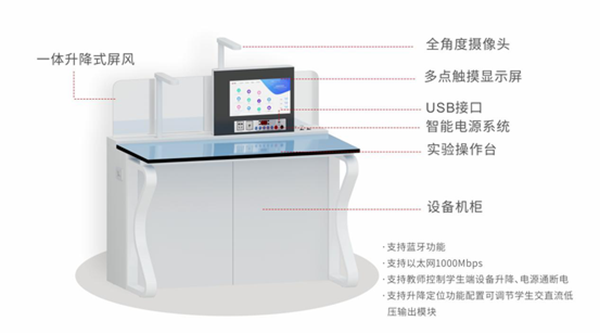 AI中考实验考场(升降式智能终端)是一款面向初中理化生实验室,满足理科实验课程教学及理科实验操作考试的智能学生终端设备。多个智能AI识别摄像头无死角拍摄,考试过程无遗漏;高清显示屏可用于考试、教学、实训等多场景;日常教学模式可作为实验操作台;实验与考试模式下,教师端屏幕及摄像点位开启,挡板自动升起,快速完成实验考试场景搭建,自由切换考试及教学场景提高实验操作教学的公平、公正、安全、高效。