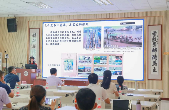 市桥象圣中学陈澍淋老师从“紧依课标,素养育人”、“立足本土,培根铸魂”、“技术赋能,启智增慧”三方面,分享了其智慧教学应用的课后反思及教学实验试点的体会。