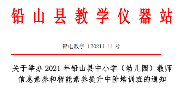 的意见》文件要求,进一步提高铅山县中小学(幼儿园)教师信息技术应用能力,全面促进信息技术与教育教学融合创新发展,开创铅山县教育信息化建设新局面。经研究,铅山县教育体育局开展了铅山县中小学(幼儿园)教师信息素养和智能素养提升培训系列活动。
