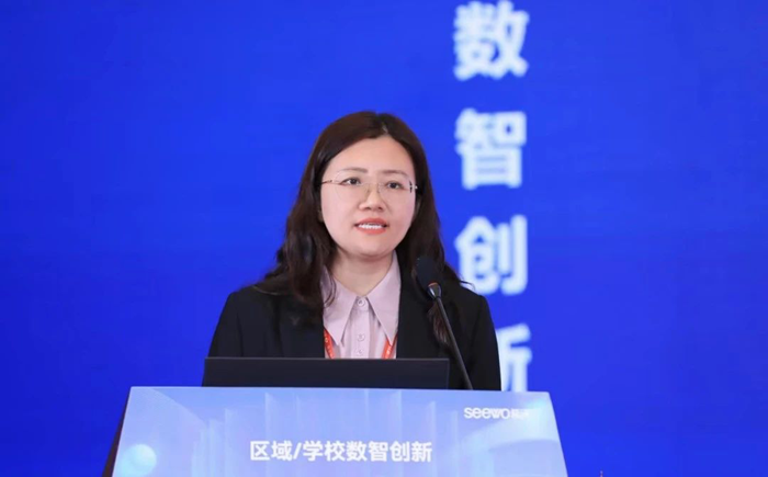 “希沃通过人工智能赋能数字化教学应用,为教师提供备课、智能授课和智能评价等工具,提高教学效率和质量。”广东省杏坛智慧教育创新研究院教育研究部主任,希沃高级研究员方娅作《数智赋能跨学科教学》的主题报告。
