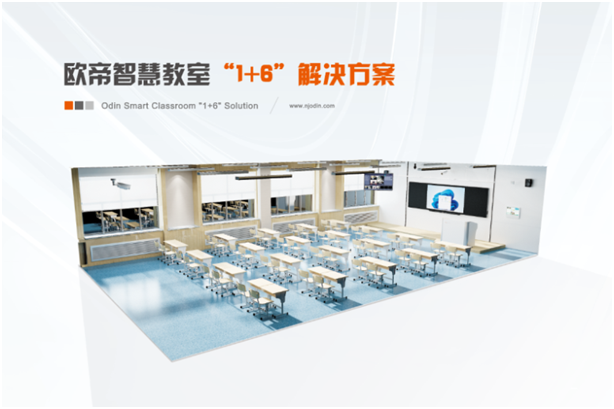 欧帝智慧教室“1+6”解决方案以教室为载体,围绕师生教学、教室环境、班级管理等维度,利用大数据、云计算、人工智能、物联网等前沿技术,采用“端+平台”的系统架构,从教学环境、教学管理和教学模式等多个维度,促进教育信息化高质量发展。