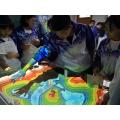 地理AR沙盘是一款适用于初高中地理教学的数字化投影沙盘。采用AR增强现实、传感等技术,即时识别互动沙盘形态,依据沙盘变化,将不同的地势地貌形态通过虚拟投影真实展示。