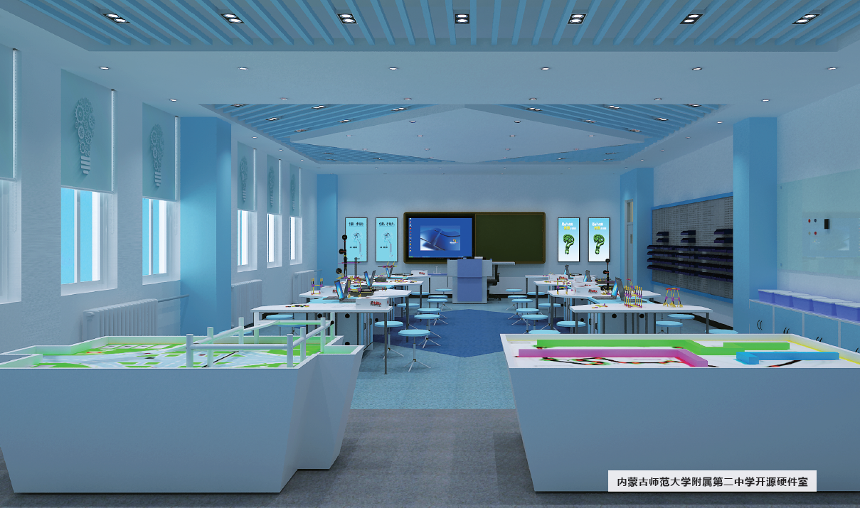 中教启星中学教育创客空间是一个集情境体验、创意生成、原型制作、功能测试和展示交流等功能于一体的开放技术实践场所,与中教股份特有的教育创客课程相结合。实验室由STEAM教学区、开源制造区、材料存储区三个分区组成。三个分区相互畅通,便于学生随时开展体验、创想、设计、制作、测试、分享等一整套创客活动。