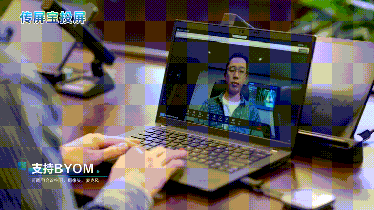 使用海信传屏宝,还可开启BYOM自带会议,个人设备即可调用会议平板的摄像头、麦克风设备,让画面更清晰,视听效果更沉浸。