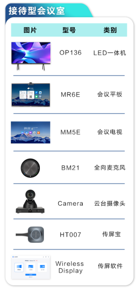 根据会议空间及需求不同,还可以自由选择不同显示设备、音视频设备、传屏设备进行自由搭配,生成个性化方案清单。