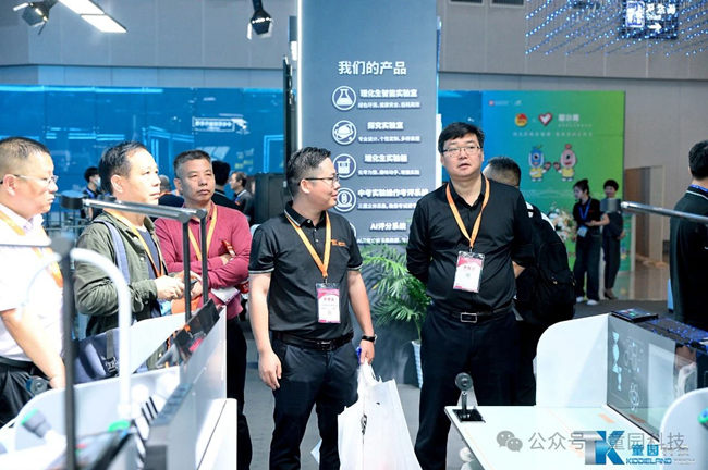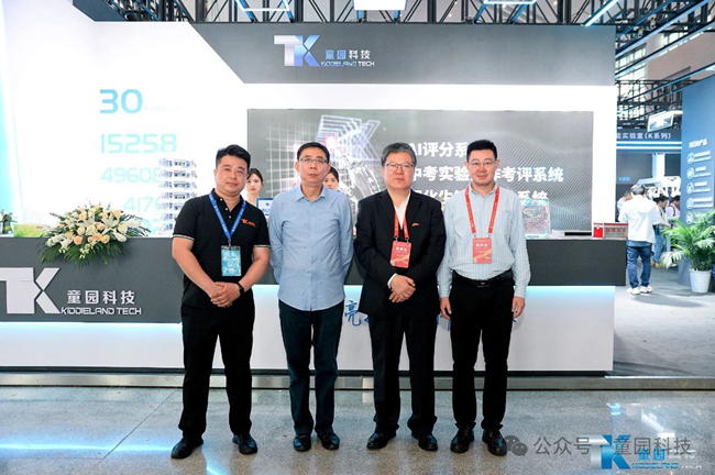展会首日,参加开幕式的部分领导、嘉宾莅临童园科技展位参观指导,广东童园科技有限公司副总经理胡刚向各位领导嘉宾介绍了童园科技新产品和全新的战略目标。各位领导们对童园科技理化生智能实验室、中考实验操作考评系统、AI评分系统等教育信息化系列产品给予了高度评价;并充分肯定了童园科技以科技引领潮流,智慧驱动创新与教育改革深度融合的战略发展方向。