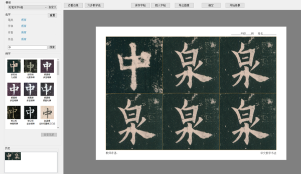(9)排版好的字帖可以保存为模板,下次上课时点击载入字帖,可直接进行练习;