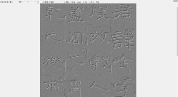 (5)点击上方模式可切换不同的显示方式,示例:点击上方的“3D”选项,碑帖显示原碑效果;