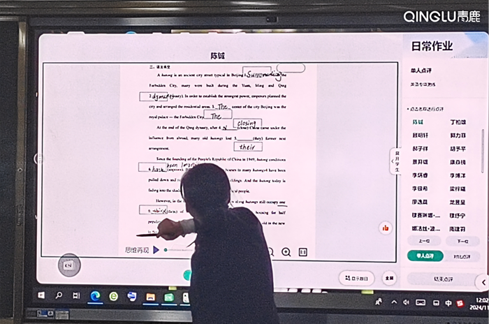 其中,英语课上,教师使用青鹿智慧纸笔系统下发导学案,实时查看学生预习成果,精准定位薄弱点,实时讲评;借助“学生演示”功能,课堂同步呈现书写笔迹,直观分析语法掌握情况。