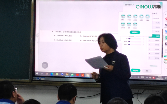 化学课上,教师利用青鹿智慧纸笔系统截屏提问功能,及时反馈学生知识点理解情况,结合笔迹回放功能,重现学生主观题解题思路,引导全班互动探讨,让抽象知识“活”起来。