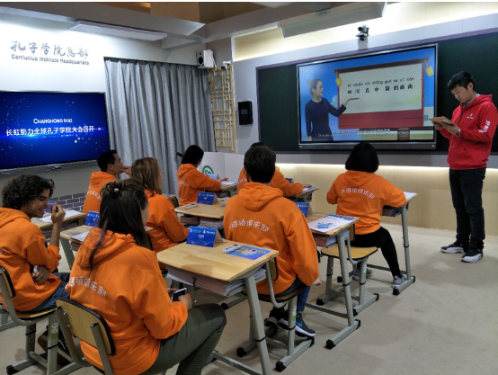 长虹智慧教室从智慧教学、智慧环境智慧管理三大方面设计规划,将AI人工智能、云计算和物联网技术与教育教学相融合,以人机互动的形式为汉语学习者提供教学和学习,也为全球的孔子学院建立智慧教室提供了样本。