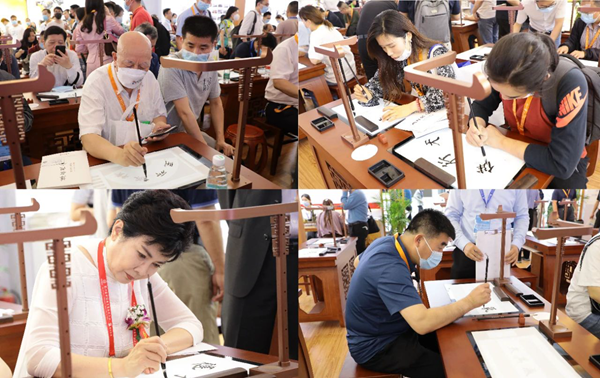 参观者接连不断地走进华文众合展位,通过使用第七代智慧书法教室,体验者真切感受到智慧书法教学的便利。华文众合希望能用更加智慧的书法教学设备实现弘扬书法传统文化的美好愿景,众心合力,弘扬华文!