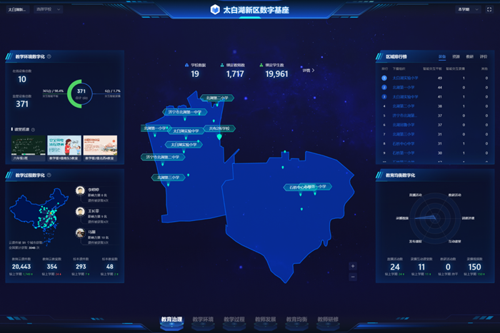 希沃区校一体化魔方平台的引入,为太白湖新区的教育带来了多方面的积极变化。太白湖新区按照 “1256” 创建思路,围绕一个 “数字太白湖” 教育治理基座、两项智慧生态校园环境提升建设、五类智慧教育数据要素采集汇聚、六项智慧教育创新应用开展建设。以数据驱动教育资源均衡配置、精准教学、教育评价改革以及教育科学治理和服务,以智能终端、数字应用、数据融合、资源共享为切入点,探索以教学为核心的应用创新实践。