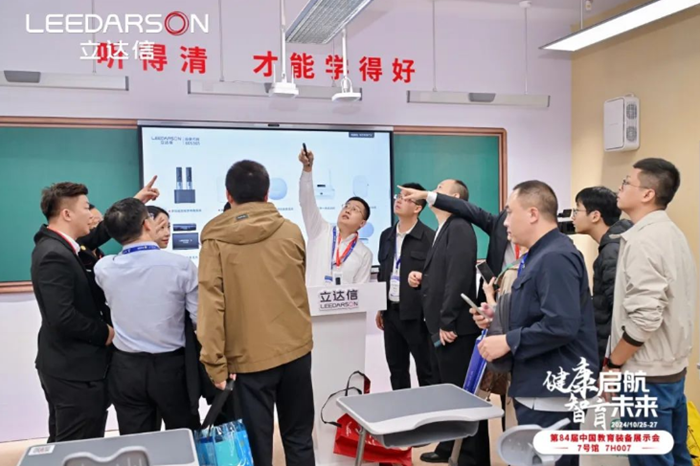 第84届中国教育装备展示会新产品、新技术、新成果发布会现场,立达信声学工程师黄书斌表示,立达信作为健康校园产品与方案提供商,充分发挥学校健康光环境建设经验,以“健康·助学”为理念,积极开展学校健康声环境建设在与学校多年的紧密配合中,深入走访调研,了解学校教室对好声音的需求,总结出健康好声的三个标准:声音清晰、声场均匀、声音还原度高,并依靠前沿声学技术和便捷的无线物联技术,为每个教室的声环境改造提供专业解决方案,不仅守护孩子们都听力健康,更是通过良好的教学声场设计提高学生听课的专注度。