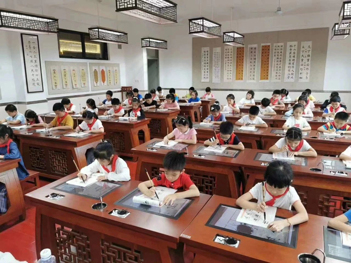 为了给孩子们提供更优质、更全面的教育,上海市青浦区御澜湾学校在2017年引进华文众合智慧书法教室。