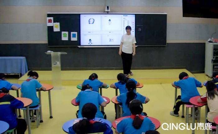 学生们用手中的青鹿智能笔在智能本上开始绘画,老师可以在一体机大屏上实时看到学生的绘画过程,课堂反馈十分直观、高效。