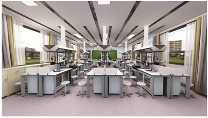 “实验室模块化顶装系统”,顶装集成、释放室内空间,满足实验室多种布局和教学需求;水、电、风集成供给,简化实验室内部设计,施工更便捷;可根据实际需求加减或更换功能模块,满足个性化需求。
