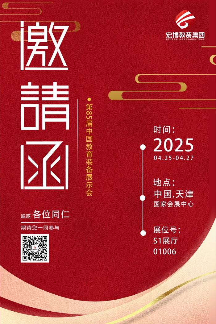 第85届中国教育装备展示会即将在天津国家会展中心盛大开幕。作为中国教育装备行业协会理事单位,宏博教装集团诚邀您莅临S1展厅01006展位,共同见证教育装备智能化变革的最新成果。