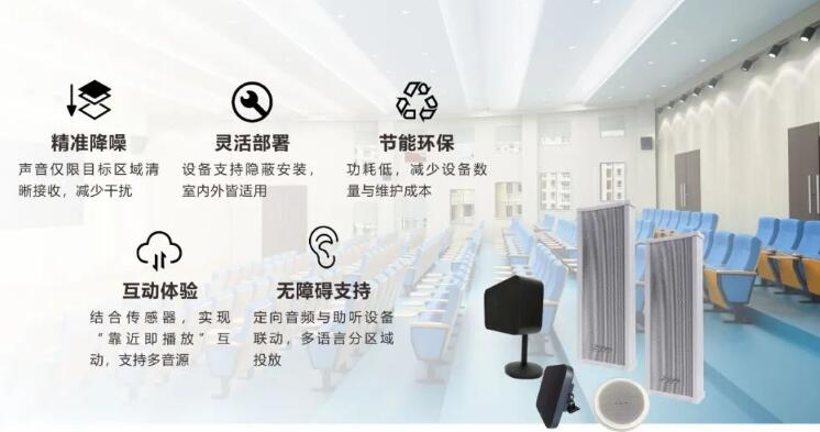 声音的精准传播能够提升学习和教学的效果。拓声定向音响凭借精准直达,让声音“指哪打哪”的独特优势,可将声音精准限制在目标区域,减少对周围环境的干扰。无论是在安静的图书馆传递通知,还是在阶梯教室分区播放教学内容,亦或是在校园展馆为展品提供互动讲解,定向音响都能完美适配,且支持隐蔽安装,节能环保,为各类教育场景带来全新听觉体验。